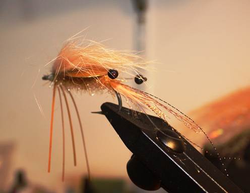 - Tails: Tuff of Tan Rabbit fur with guard hairs, four to six strand of Root Beer Krystal Flash and two strands of Pearl Flash-A-Bou