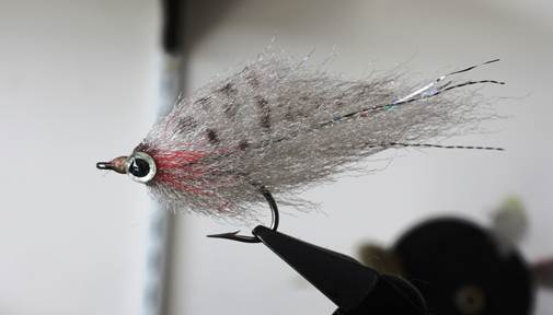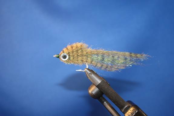 - Wing/Body: Silver/Grey EP Fibers with two strands of Silver Flash-A-Bou topped with a thin bunch of Bronze EP Fibers and then another Bunch of Silver/Grey EP Fibers