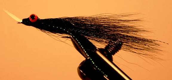 Dumb-bell eyes can be used on this pattern for deep running imitations. The original Mickey Finn was designed by John Alden Knight during the 1930’s and the original pattern was a bucktail.