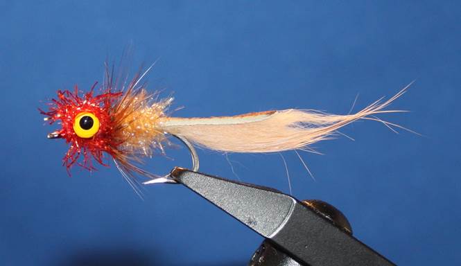 - Gills: Two small bunches of Red EP Fibers tied on either side as gills, remember to make them short and thin