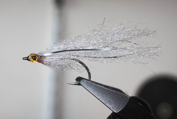 - Wing: White Bucktail with 6 strands Silver Krystal Flash and 3 strands of Pearl Krystal Flash with two Strands of Black Krystal Flash