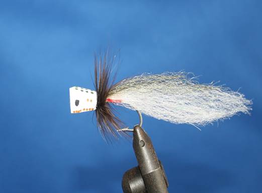 - Eyes: Dumb-bell types, Painted white with black centers, tied at the rear of the hook, the imitation will be tied with a long nose