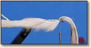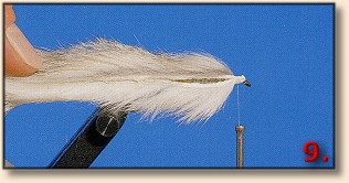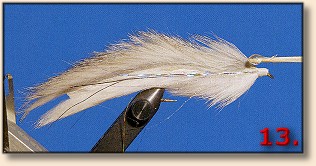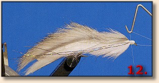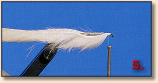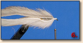 hook shank.Body: White Magnum Rabbit Strip for the belly;