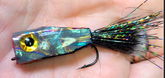 I like to mess around with different “non-traditional” materials when tying flies. I picked up a couple of colors of this Shimmer Vinyl on sale at Hobby Lobby for $4.48 for each roll. The rolls are 12" wide and 48" long, so you get a TON of material. I applied this very thin vinyl to a piece of 1/8" thick craft foam to fabricate this minnow pattern. A simple pattern where I tied in the tail material, and cut the foam to size (with the vinyl already attached). and superglue the foam in place. I touched it up a bit with a marker to give it vertical bars and gills, added 3D eyes, and gave it a coat of UV epoxy. I just threw this one together to see if this stuff would hold up to the epoxy coating. For some reason, the epoxy eliminated the shimmer, but it made the vinyl into a shiny silver blue mirror which looks great. I think that this material may have lots of applications at the tying bench so I thought I’d share it here in case there are any other folks interested in messing around with this stuff.