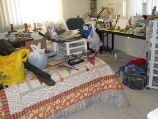 My little corner of the world. To my right and behind me are book shelves filled with more highly necessary crap. ![]()