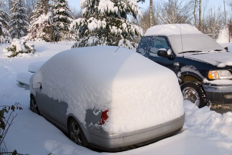 We had a little Monday and about 1 foot yesterday. My wife is happy, Bella, my pup is confused and I’m amazed. The carport awning collasped under the weight and both cars were under it. My neighbor gave us a hand this morning and I backed both vehicles out. They are both Saturns so no real damage. The sun was out all day with temperatures in the 50s so most of the white stuff is gone. Now it’s just a muddy mess.:rolleyes: