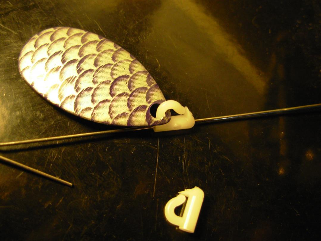 OK, down to business... i dress the heck out of them.... crystal flash, mallard flank and dry fly hackle on the treble, (the dry fly hackle takes the focus off the thread wraps and helps hide the barbs of the treble.) then, marabou and crystal flash pressed around a ball to hide the joint and blend the transition, and finally some more dry fly hackle pressed between a ball and the barrel to finish, it helps act as a buffer for the spinner blade... the last bit of hackle (the blade buffer) is getting destroyed after about 2-3 hours of heavy use.. I'm assuming its due to the spinner blade and rocks, since I've been fishing very shallow water...
