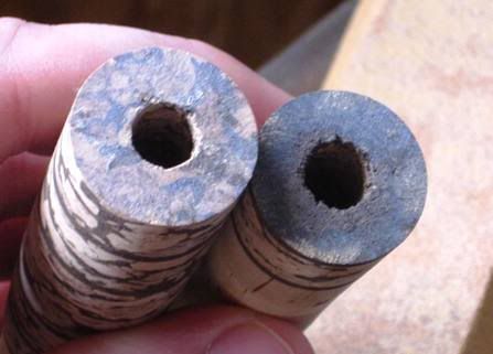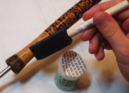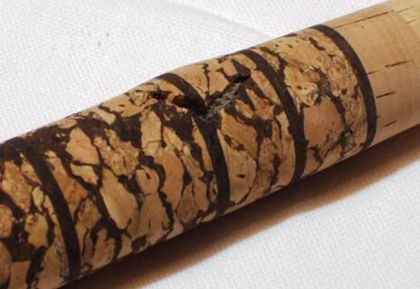 The regular cork I bought for this rod was supposedly FLOR grade, but my source was one of these major sporting goods retailers that also happens to sell some rod building components. Obvisouly not the best source for cork, but I had gift certs there so thought I would give it a try. Anyway long story short there are some pits in the cork that I felt were too deep to ignore. I like the look of some pits and streaks as I think it adds a little character, but I dont like ones deep enough that I have to worry about them chipping out at some time…here are some of the culprits…