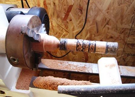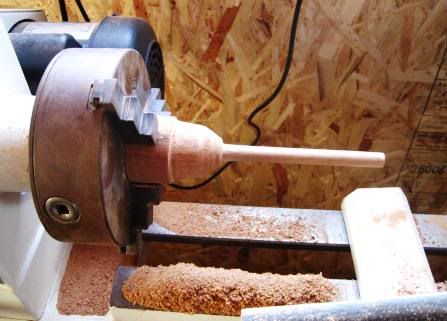 Next step was to turn this down to the proper size…Since it was turned on the lathe it is perfectly centered and should give a nice true round handle.