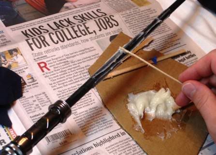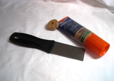 I had heard of some people using this elmers golden oak wood filler to fill cork so I thought I would try that out since I had never used it before. Decided to try it out on a test piece before I committed to using it on my handle…