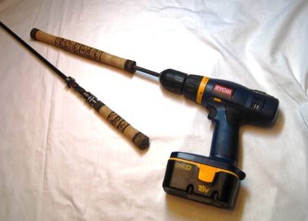 Next step was to fit the pieces to the rod blank. The butt piece had already been reamed to size, so just had to ream out the reel seat and the front grip. Round file mounted ona hand drill can make quick work of this job…