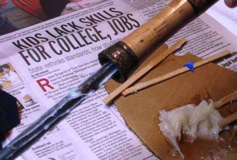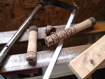I guess I dont really understand why this happened like this…really bums me out. Never experienced this before, and of couse it happens on a larger handle (read more expensive!) My wife asked me if I could just glue it back together…I’m pretty sure if I try to clean out all the grit and glue it up it will look pretty bad…so I guess I will be making a new handle. Really bums me out because this handle was a perfect fit and felt really good in hand. Oh well, such is life. I am short 5 cork rings though so now I have to place and order and wait for it to get here…serious delay in the project. I wont post photos of making the new handle as you’ve already seen how I do that…hopefully this set back wont take too long to fix.