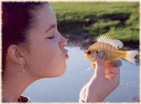 Don’t fret if your own line never gets wet, help her catch fish. When she catches one she will be excited. Take it off the hook and release it gently. She will want to be sure it’s not hurt. (Boys will try to throw it as far into the middle of the pond as possible.) After a few fish she may ask to hold and release a fish. At that point you have earned a pat on the back and you probably think things are going perfectly. Then she will loose interest. No matter how well the fish are biting, she will find something better to do than catch them. (Boys want to hook every fish in the pond.) Don’t try to stop her as long as she’s doing something safe. A half-hour fishing today, an hour next time. Be patient. Try to take her out often and when you finally practice casting with her, do it on the water. Practicing fly casting in the yard is something adults do. Kids equate that to homework. Practicing on the water presents at least a remote chance of catching something and so - not homework.