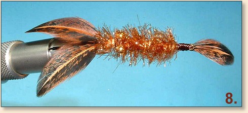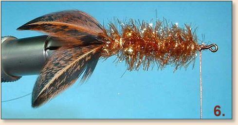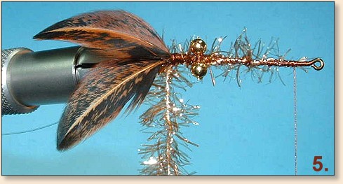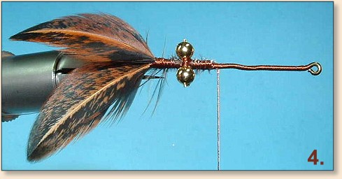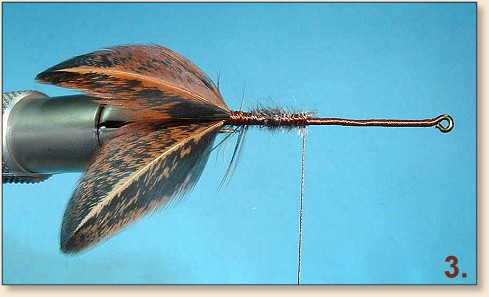 wraps and trim the excess. - Attach a genetic hen feather (similar in color to