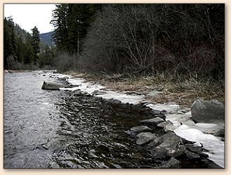 and snow garnish the banks, and the creek itself is a bit