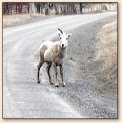 mind a little traffic big horned sheep and mountain goats that