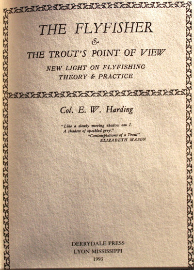 Col. Harding book will make you think and better understand the world of the trout, and possibly lead you to a new path of understanding and help you to create better imitations to fool the trout on the water that you fish.