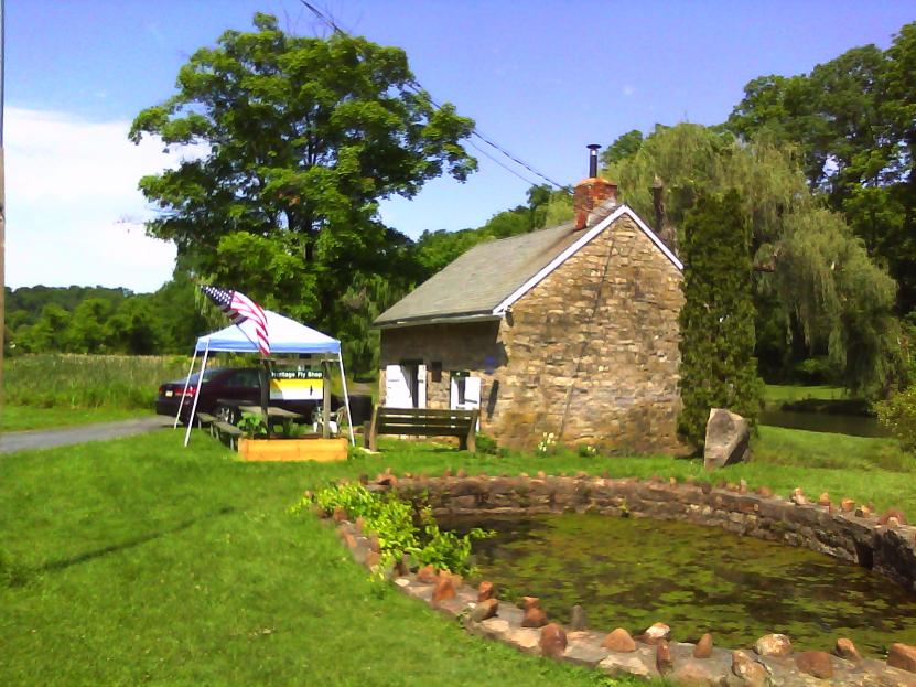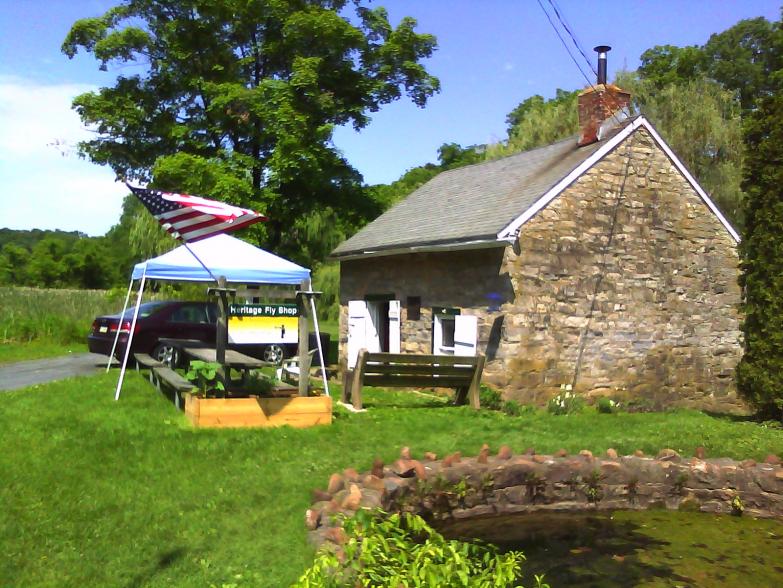 The pictured stone building is actually a spring house. A spring emerges from inside the building, and flows out to the creek. Back in the day, there were no refrigerators, and this building was part of a farm that used it for food storage (milk, etc). It now serves as the home of the Heritage Fly Shop (formerly the Little Lehigh Fly Shop) - I have no connection to this business, other than being old friends with the owner (Dave Bittner).