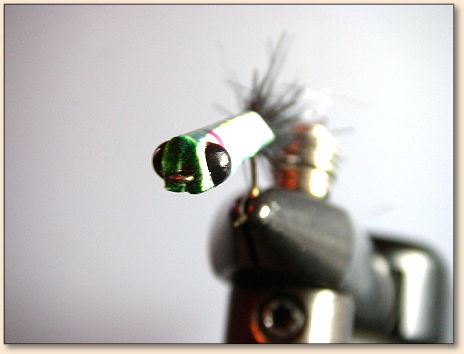of the fly, I use a craft utility knife tip to apply the black plastic