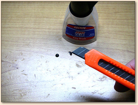 1. After placing some adhesive Super Glue onto the eye area