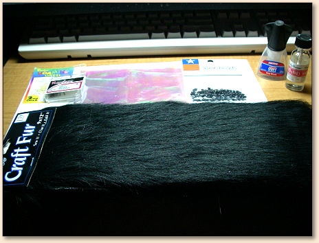 Tail: Black shag (long) craft fur (Such as Darice).