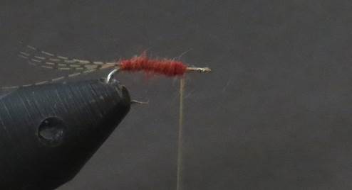 Tie in hackle, shiny side facing you, build up thorax, clip excess hackle fiber