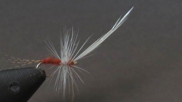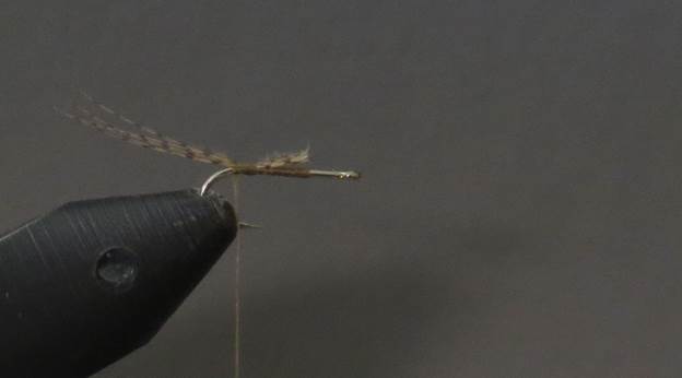 This fly is simple and easy to tie. You can split the tails or tie them in straight, both perform equally well. I tie some with the wings fully spent, I tie some with the wings in a slight V so that the fly can rock from one wing to the other and I have even tied some with just one wing on one side.