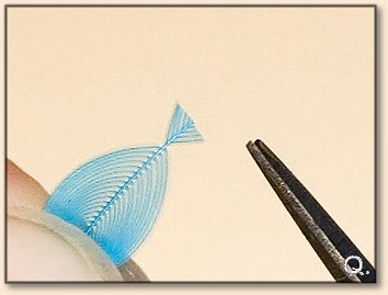 in the tip, cut off to make a small triangle to tie in