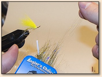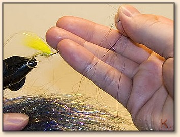 hair to length, just past the bend of the hook. Tie in the