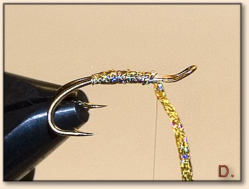 gold tinsel on the underside of the hook.
