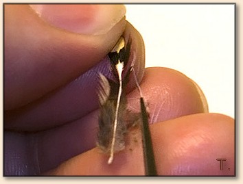 crush down and spread the wing root with your thumbnail