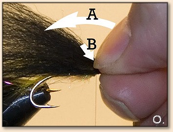 of the hook, if you take to many fibers from the wing along