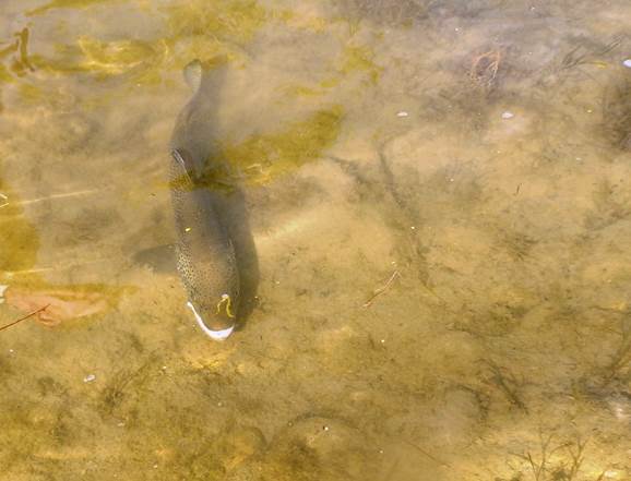 Now there are cool or moist days when we find the mayflies sitting on the water for extended periods of time then of course we feed on the adults. We will also feed on adults after the intensity of the main emergence has faded, as the overwhelming number of nymphal food forms decrease their availability for the day then many of us trout who are still looking for a snack will key in on the scattered and occasional adults that we find on the surface of the water.