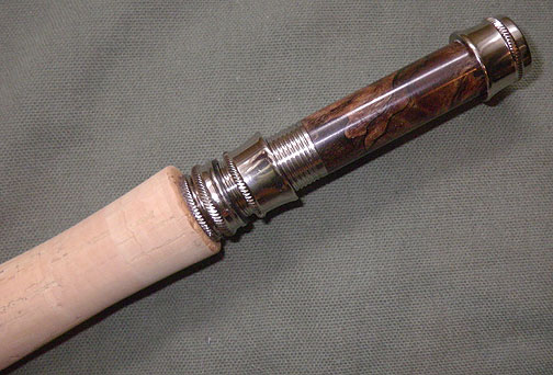 Kathy got busy and didn’t send out a rod blank right away. Then she was at a fly fishing show and ran across a guy who sold salvaged cane blanks and to whom she had given a DVD or book. He wanted to give her something in return. She wanted nothing but remembered that she had wanted to send me a rod blank and asked him for one to send to me. Kathy’s husband, David Van Burel, installed the ferrules and they shipped me the rod.