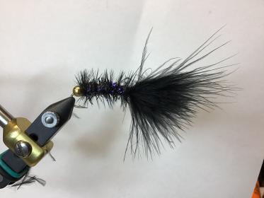 You just need to stick to PGA mixed with grape juice, lemondade and 7-UP. That will make thinking about how to fish it easier. Might snag a bit with the weight in the back. It might ride hook point up. Should have a nice jigging action when retrieved. Could work as a crayfish pattern with the right colors. Glass is empty. Have to get ready for my Zoom meditation class.