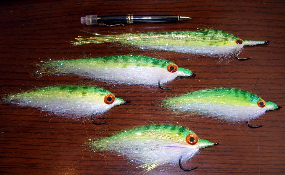 Using Mike Martinek Jr’s ‘Awesome-hair’ material. Have had excellent results on dorado, yellowfin tuna, striped marlin. Also, lakers and pike have fallen victim to them. Different shapes work better at times, but the colors are always effective.