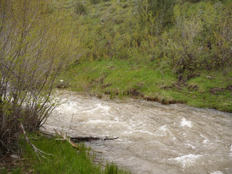 Went up towards the headwaters of one of the local rivers, thinking the smaller tributaries may not be as high and off color as the mainstems are right now. The rivers haven’t been fishable for more than a month now (well, they are technically fishable, just very high and muddy). Got up to the trailhead and the clouds were hanging low, which I thought could be a good sign for a bwo hatch. Laced up the boots and headed down the trail towards the creek. Unfortutnately, when I reached the creek, I saw it was also very high and muddy. There are a number of beaver ponds around, so I figured I would try my luck on those. Fished for a few hours, but didn’t see a single rise or shadow move in the creek. Water is just too turbid still. Hopefully it will heat up soon and the run-off will finish doing its thing.