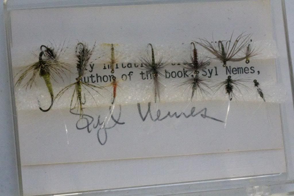 He wrote several other little books. One of my favorites, though, was his little book on soft-hackle spinners. Again, I was able to get a brace of his hand tied spinner patterns. Love looking at them.
