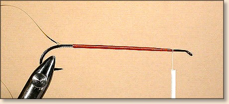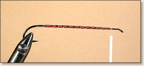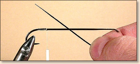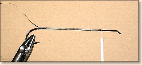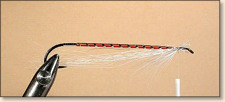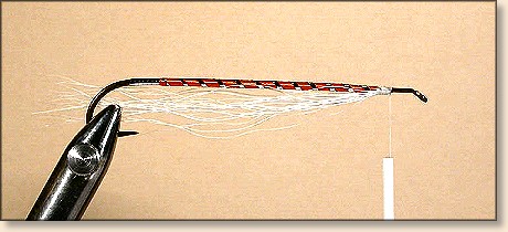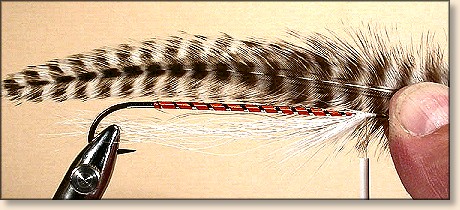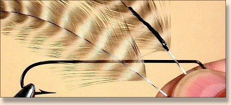 I choose to tie the hackle barbs as shown. Tie in the hackle