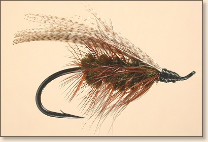 Body: Dark green chenille palmered with brown hackle.
