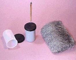 An empty 35mm film can, some #1 or courser steel wool