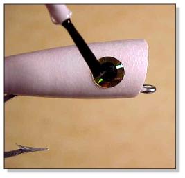 Now, paint a coat or several over the Mylar Eyes and the surrounding area of your popper. You can