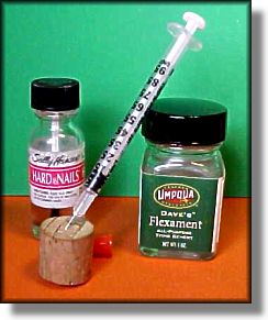 Now, either Dave’s Fleximent, or Sally Hansen’s “Hard As Nails” will work in the syringe, but they