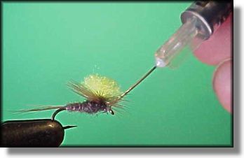 apply glue anywhere you want it, in the proper amount so as not to make a mess of your fly.