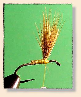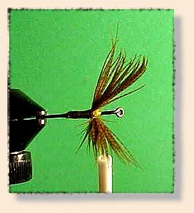 tied with bunches of Mallard or Wood Duck flank feathers upright and divided.