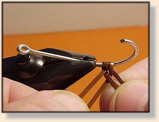 Now place your modified hook into your vice upside down and backwards as shown here.