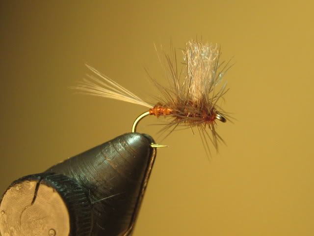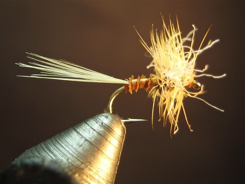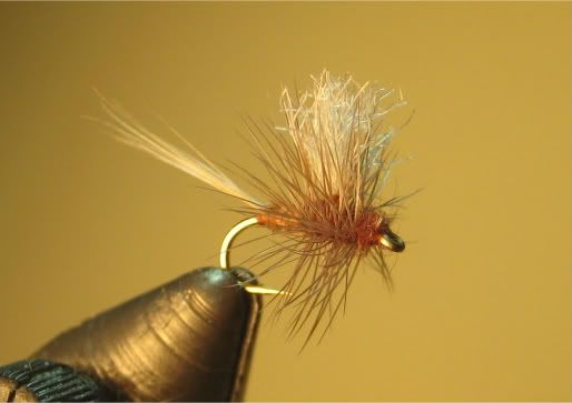 Otherwise the natural curve of the hackle will bring the hackle on the right hand side of the fly (when turned rightside up and eye facing you) orienting downwards while the hackle on the left hand side heads more to the side. If this happens, the fly may not “cock” properly on the water.