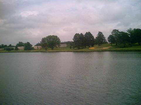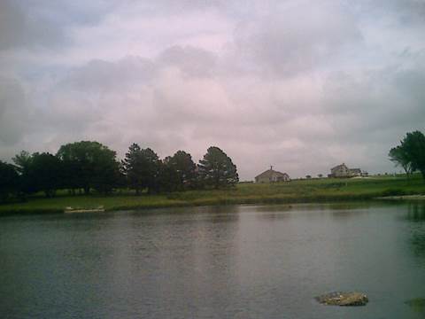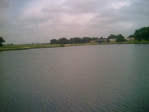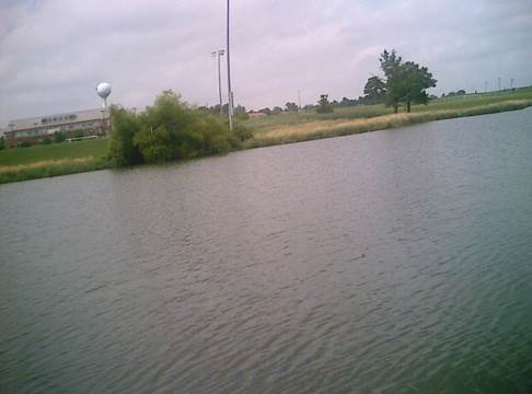 I ate lunch and headed out, taking two rods and a couple of boxes of flies. I had a 3 weight graphite and a 5 weightt bamboo rod with me. It was still to wet to try to drive into many ponds so I headed out to the university to fish the pond near the football field. This is what it looks like.