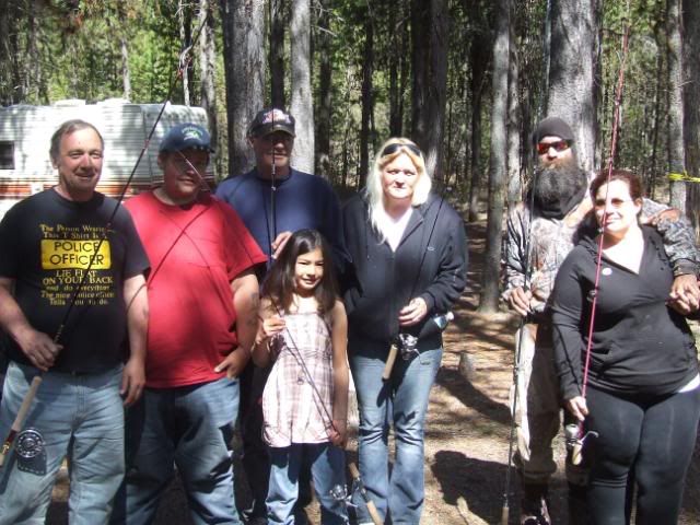 As you know i have built a lot of rods for folks and that goes for the folks we camp with. This is a pic of them with their rods. I am the one with the police officer shirt on