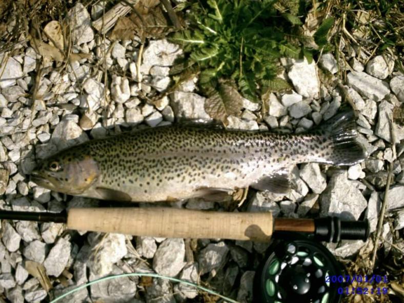 First trout, a littlle put-and-take stocker. On a fly I tied. Don’t pay attention to the datestamp, I didn’t have it set correctly. I didn’t start flyfishing untill the Summer of 2011. I caught many bluegill, crappie and a couple of bass before I was able to catch this fella nearly a year later. The story: /bb/showthread.php?45549-First-Trout!